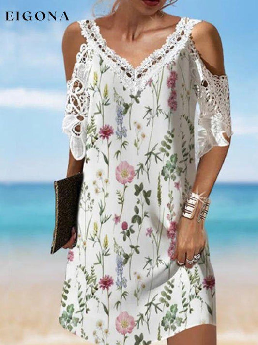 Schulterfreies Spitzenkleid mit V-Ausschnitt und Print