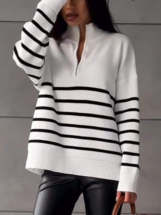 Gestreiftes Strickoberteil mit Stehkragen für Damen