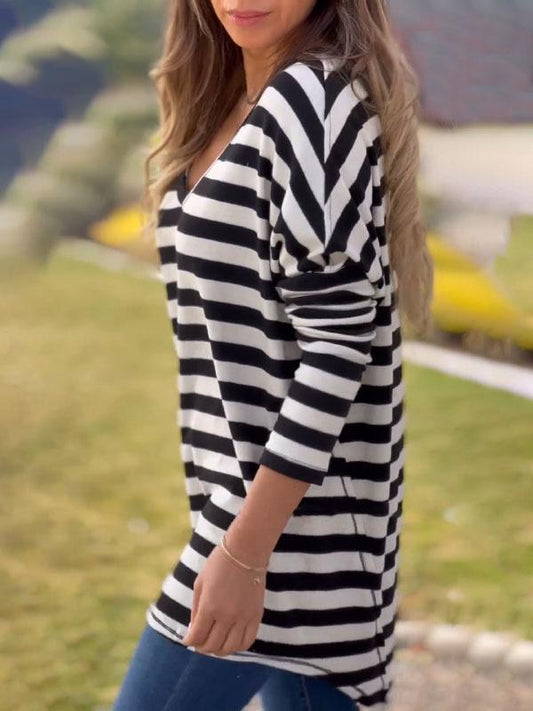 Gestreiftes Patchwork mit unregelmäßigen langen Ärmeln für Frauen