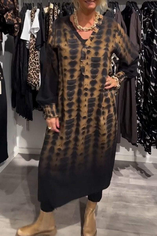 Lockeres Freizeitkleid mit V-Ausschnitt und Leopardenmuster für Damen im Frühling/Herbst