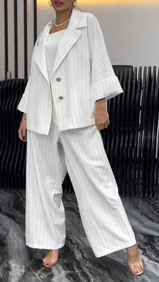 Zweiteiliger Anzug aus gestreiftem Langarmblazer für Damen
