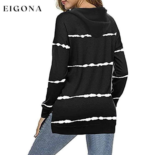 Gestreifter, bedruckter, langärmliger Kapuzenpullover mit Kordelzug für Damen