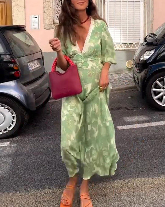 Lässiges, lockeres Boho-Midikleid für Damen mit V-Ausschnitt