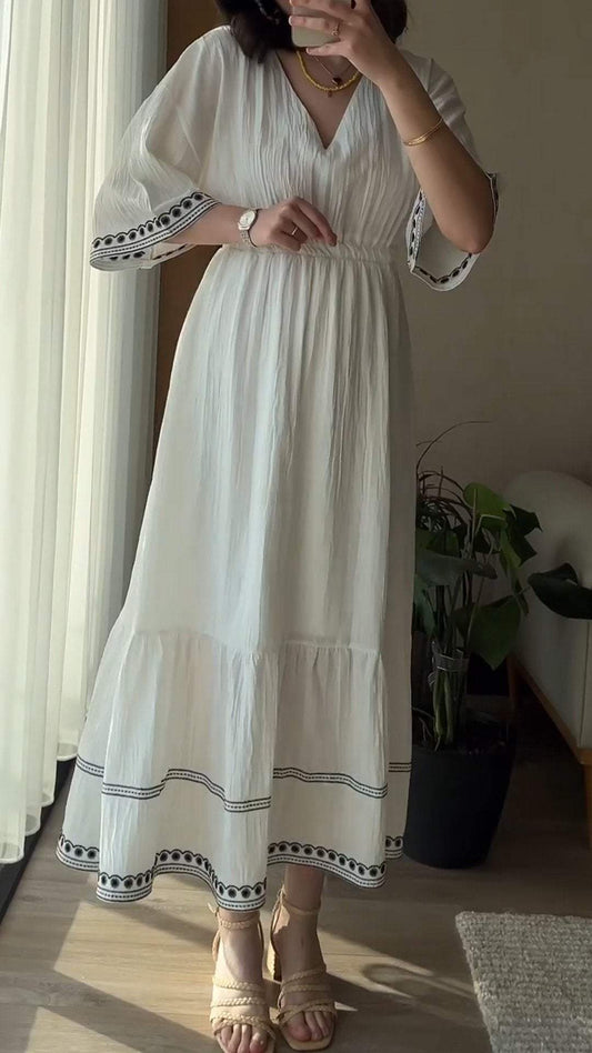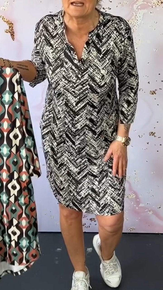 Freizeitkleid mit V-Ausschnitt und mittellangen Ärmeln für Damen