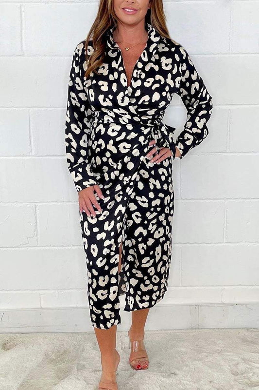 Wickelkleid mit V-Ausschnitt und Leopardenmuster für Damen