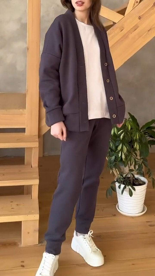 Lässiger Sweatshirt-Anzug mit V-Ausschnitt und langen Ärmeln für Damen