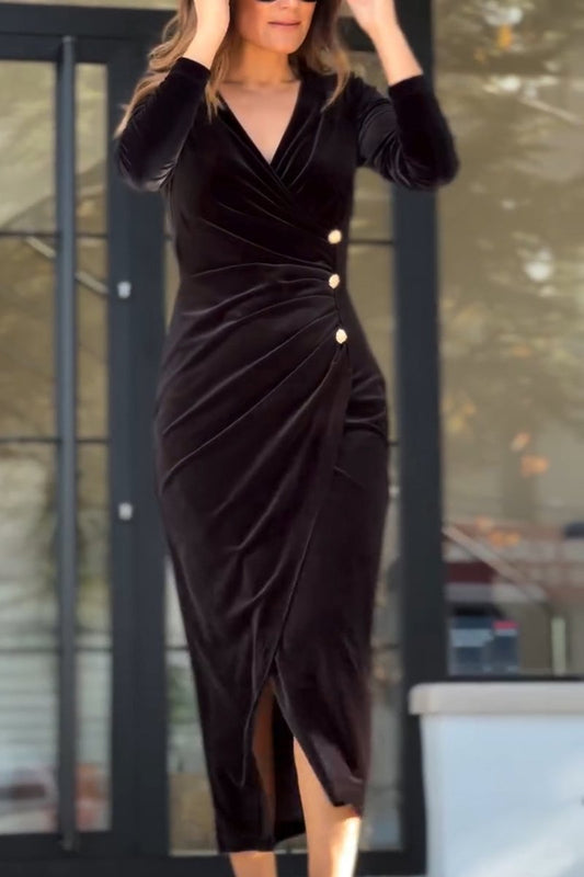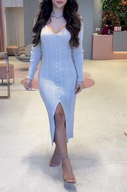 Langärmliges Slim Fit-Kleid mit V-Ausschnitt für Damen