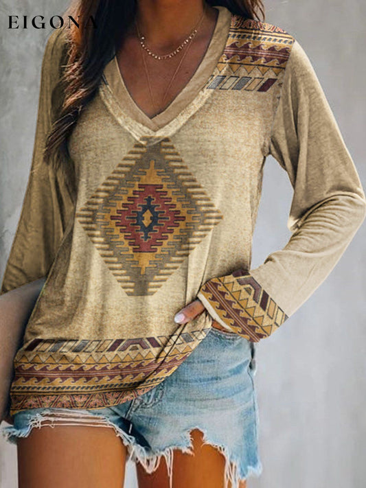 Bedrucktes T-Shirt mit V-Ausschnitt für Damen im Western-Ethno-Stil
