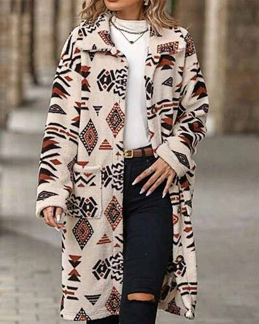 Langärmliger Mantel im Western-Retro-Print für Damen