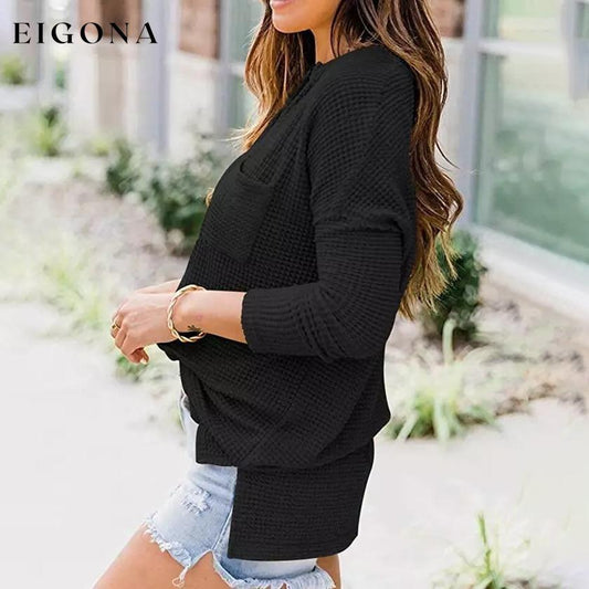 Damen-Pullover mit Waffelmuster, übergroß, für den Herbst, V-Ausschnitt