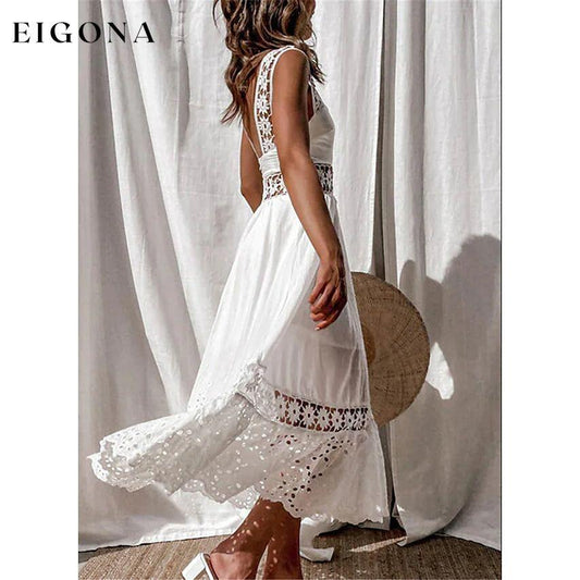Weißes, ärmelloses, einfarbiges Spitzen-Einsatzkleid für Damen
