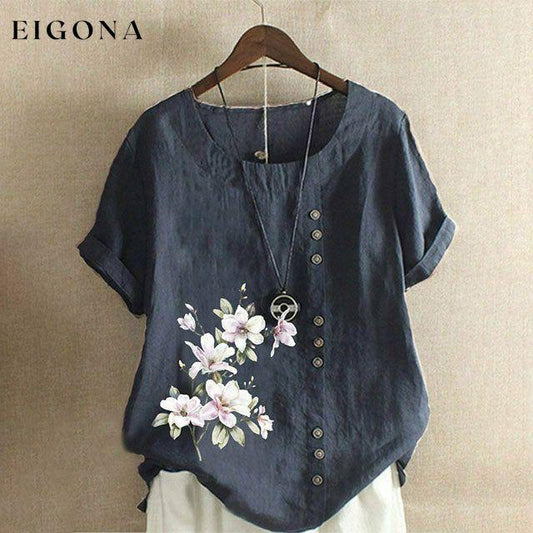 【Baumwolle und Leinen】Lässige Bluse mit Blumendruck