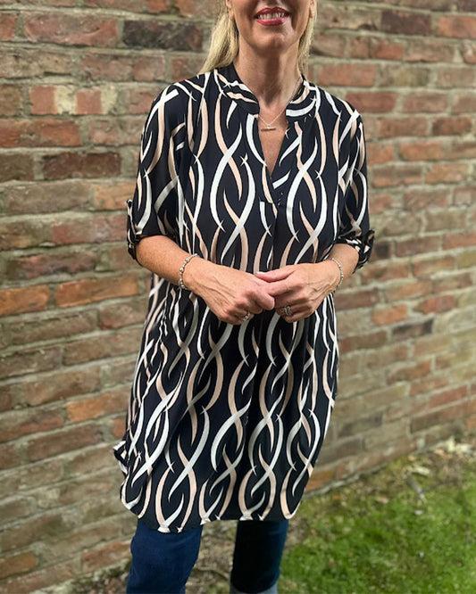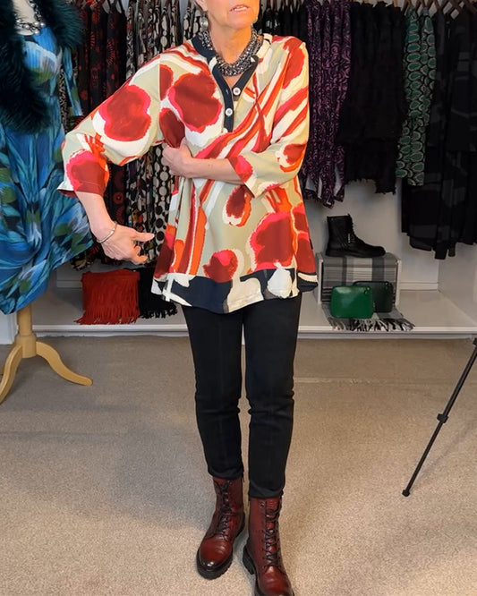Lässig bedruckte Langarmbluse mit V-Ausschnitt
