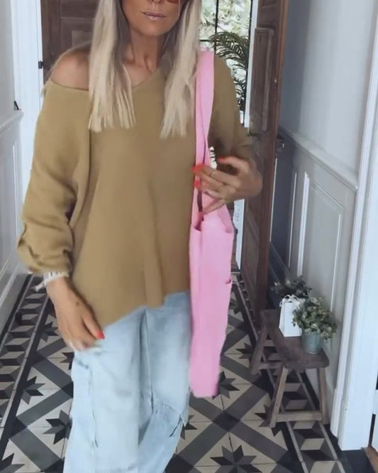 Lässiges, einfarbiges, schulterfreies, lockeres Oberteil