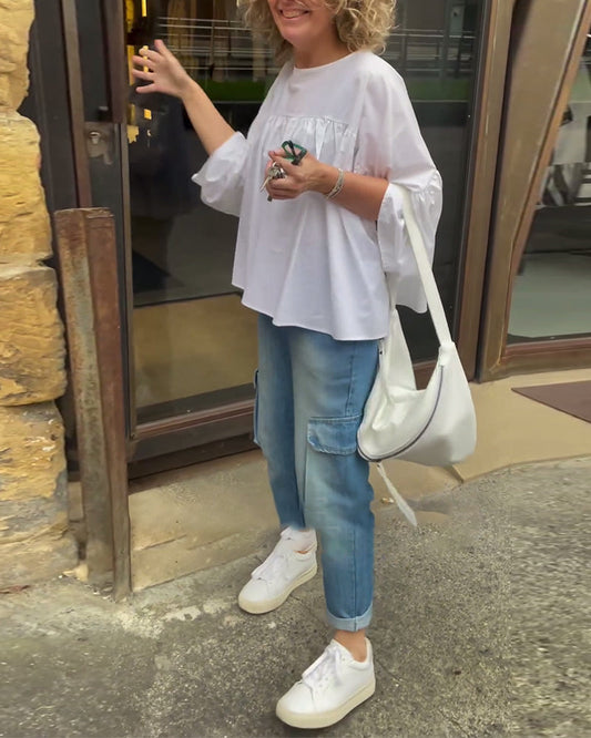 Lässiges einfarbiges Patchwork-Oberteil mit Dreiviertelärmeln
