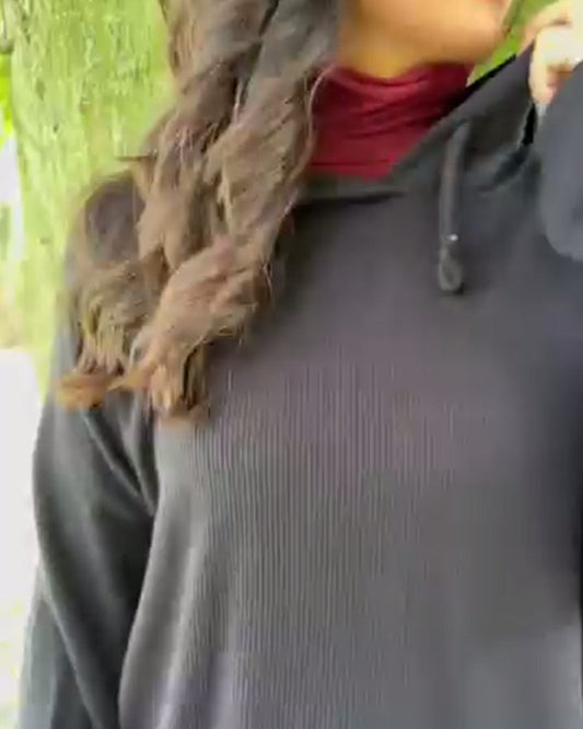 Lässiges, einfarbiges, lockeres Oberteil mit Kapuze