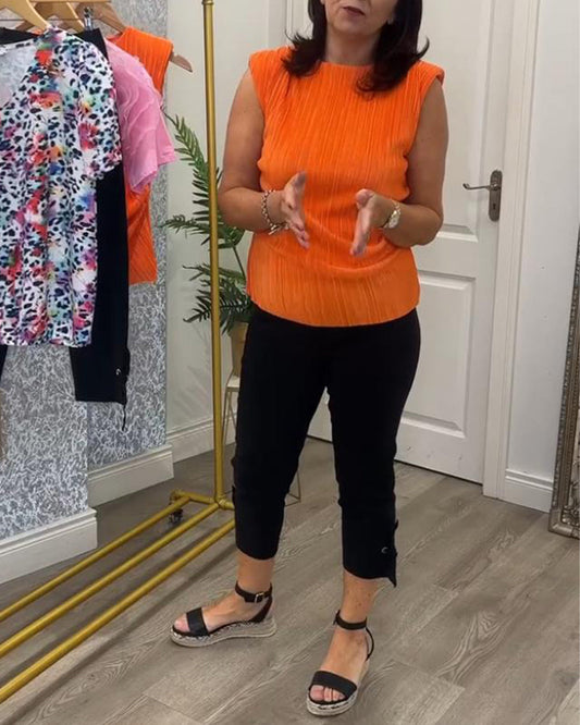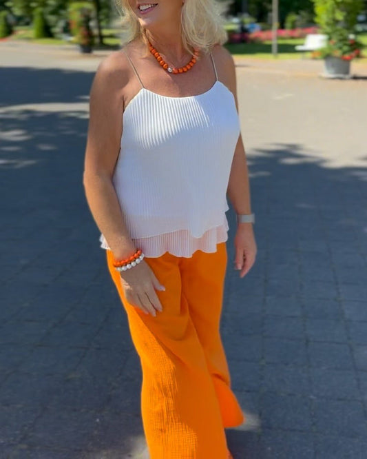 Lässiges, einfarbiges Plissee-Top mit Knopfleiste