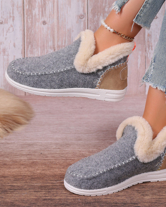 Lässige, warme flache Schuhe mit Patchwork-Muster in Volltonfarbe
