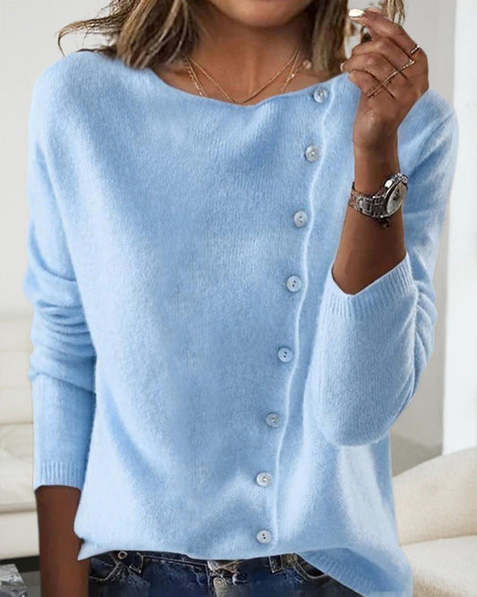 Lässiger, einfarbiger Pullover mit Rundhalsausschnitt und schrägen Knöpfen