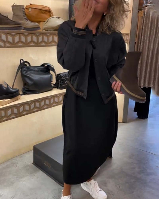 Lässige, einfarbige Jacke mit Stehkragen und Knöpfen