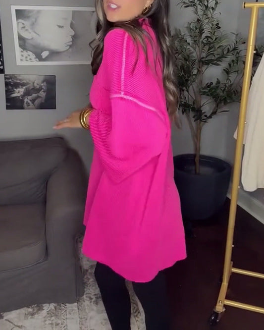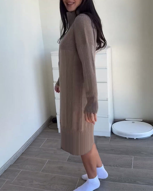 Lässiges, einfarbiges Pulloverkleid mit Stehkragen und Reißverschluss