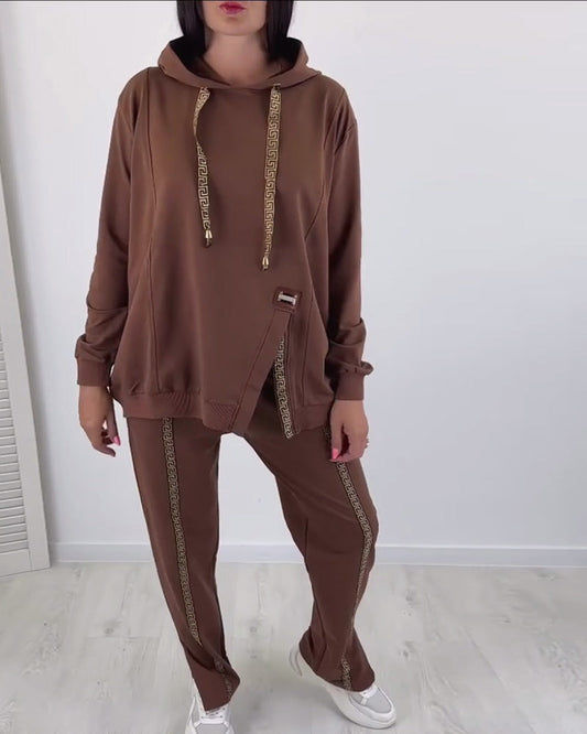 Lässiges, einfarbiges Hoodie-Set mit Schlitz