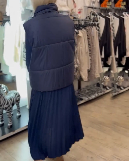 Lässige, einfarbige, ärmellose Steppjacke mit Stehkragen und Reißverschluss