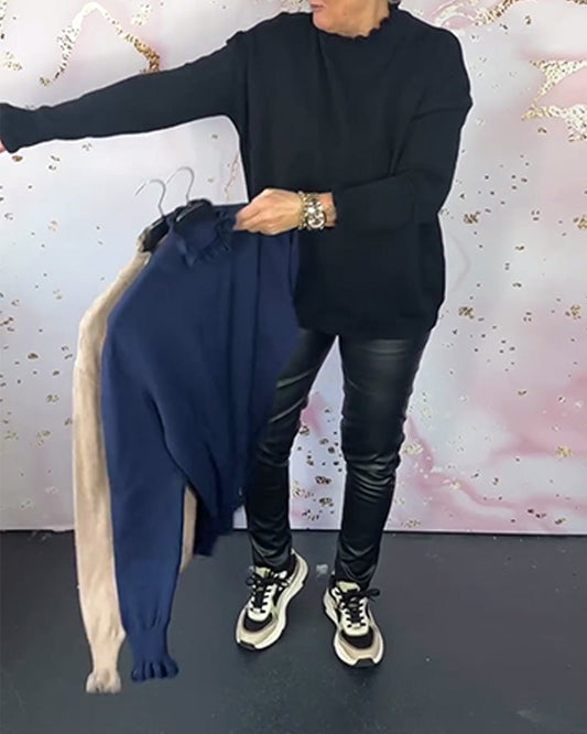 Lässiger, einfarbiger Rüschenpullover