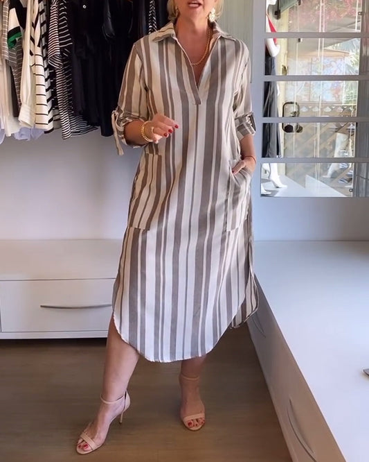 Maxikleid mit gepunktetem Hemd und Regenschirm-Taschen