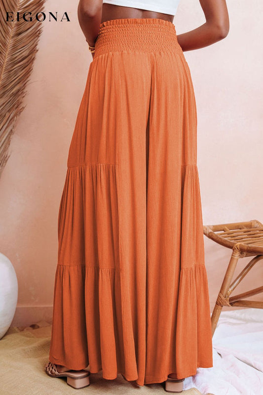 Orangefarbene Hose mit gesmokter Taille und weitem Bein