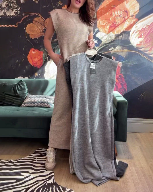 Lässiges Kleid mit Rundhalsausschnitt und einfarbigen Nähten
