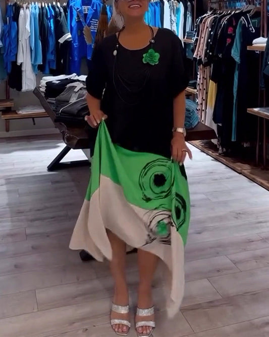 Lässiges Kleid mit Farbblock-Muster und Kontrastdruck