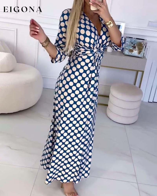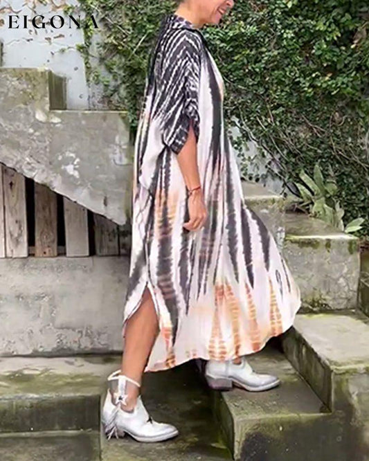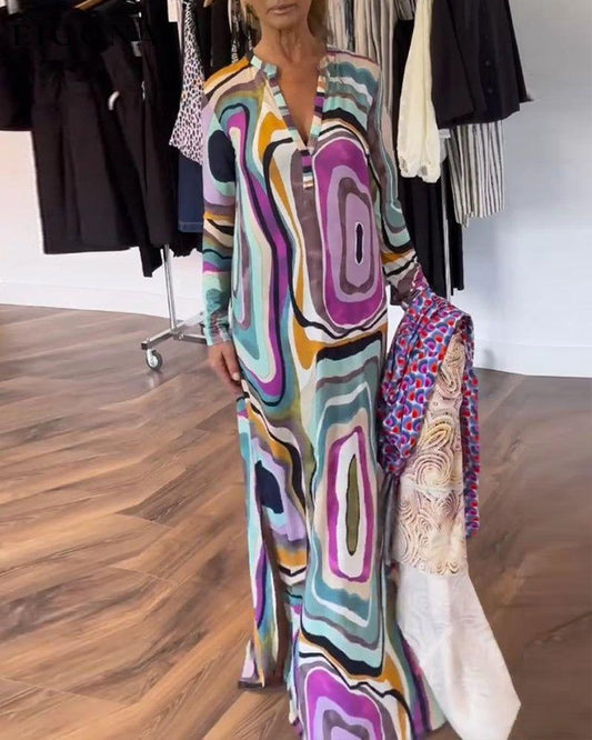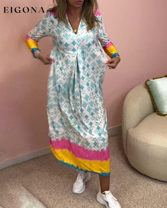 Lässiges, bedrucktes langes Kleid mit V-Ausschnitt