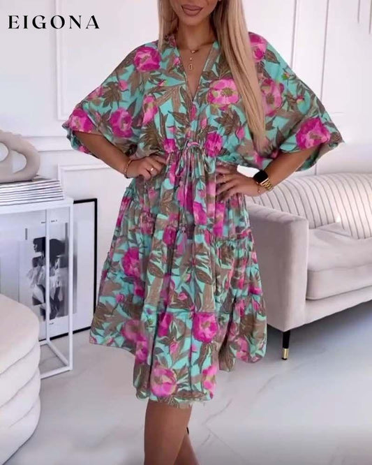 Elegantes Kleid mit farbenfrohem Blumendruck und V-Ausschnitt