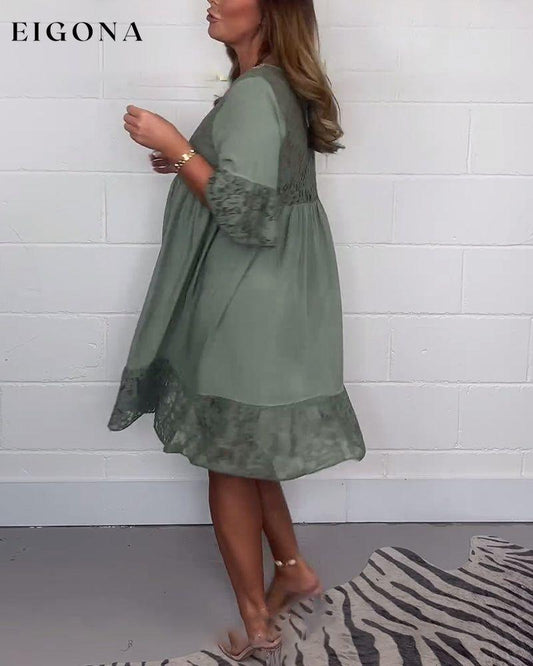 Elegantes Kleid aus einfarbiger Spitze mit lockerem V-Ausschnitt
