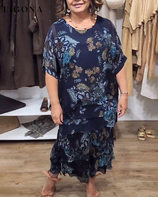 Bedrucktes Vintage-Maxikleid mit 3/4-Ärmeln