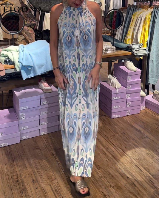 Elegantes, bedrucktes, ärmelloses, langes Neckholder-Kleid