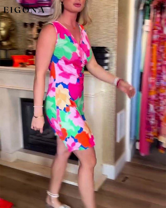 Ärmelloses, elegantes Kleid mit Blumendruck und V-Ausschnitt