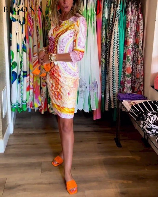 Bedrucktes Freizeitkleid mit halben Ärmeln