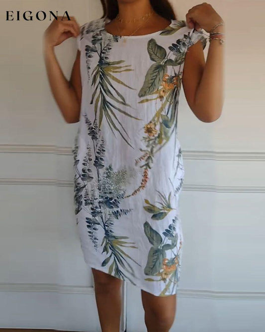 Bequemes Kleid mit Raglan-Tasche und Blatt-Print
