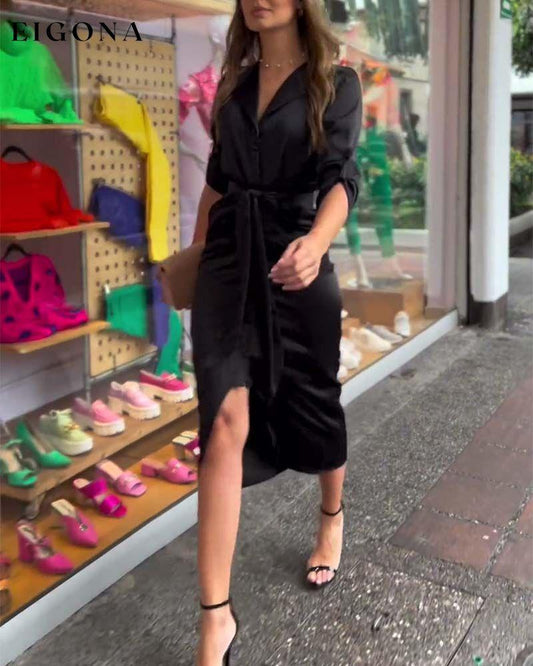 Lässiges einfarbiges Kleid mit Reversknöpfen