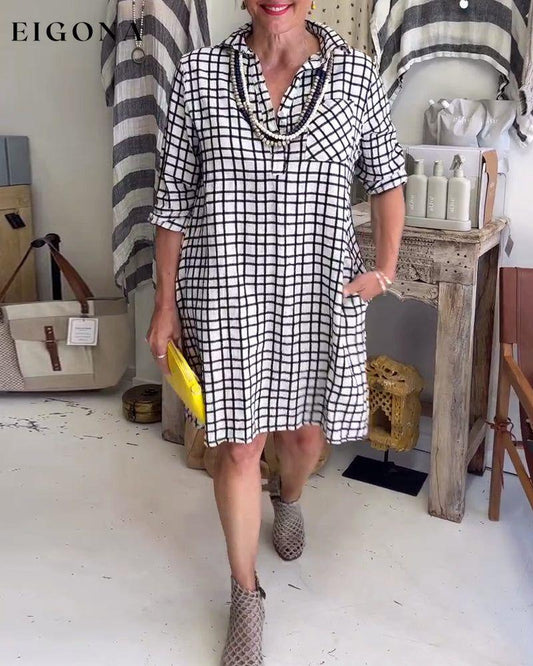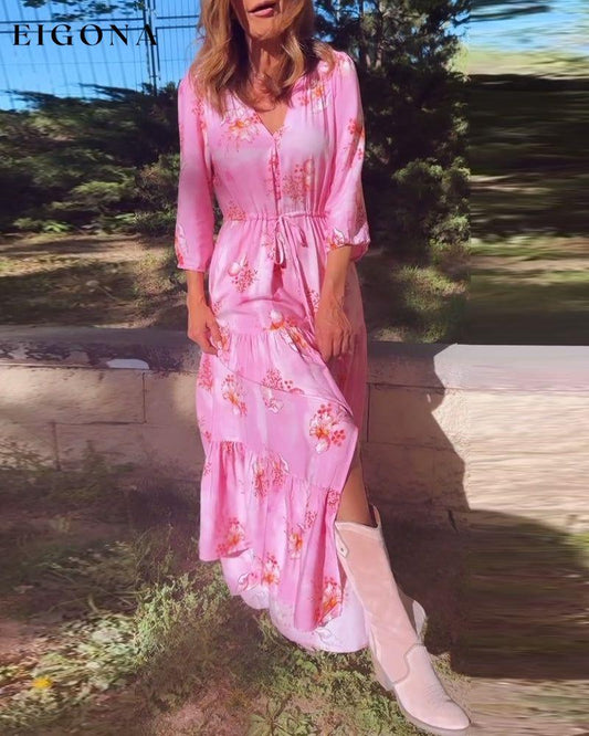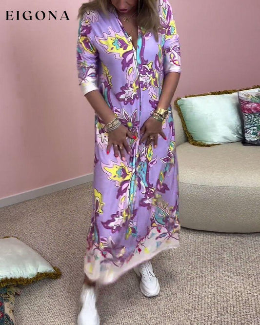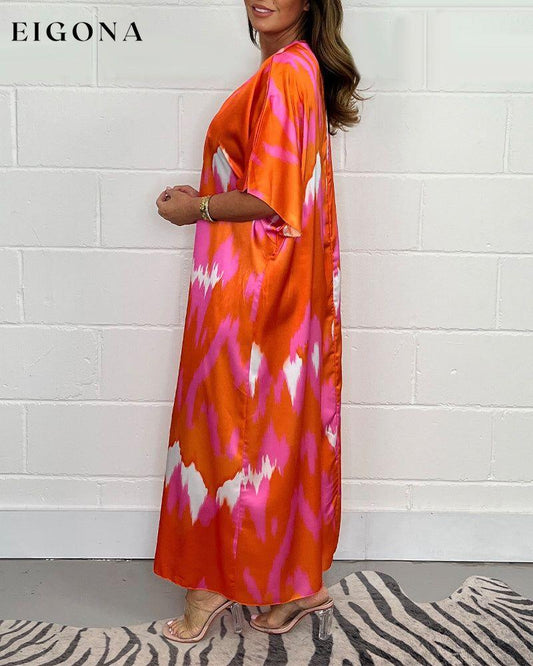 Modisches, bedrucktes, lockeres Kleid mit V-Ausschnitt und halblangen Ärmeln