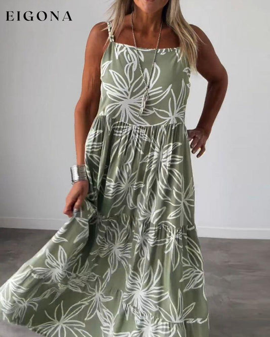 Hosenträgerkleid mit Blättermuster und großem Saum