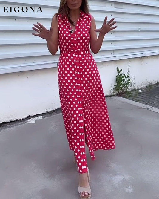 Ärmelloses Kleid mit Polka Dot-Muster und Revers