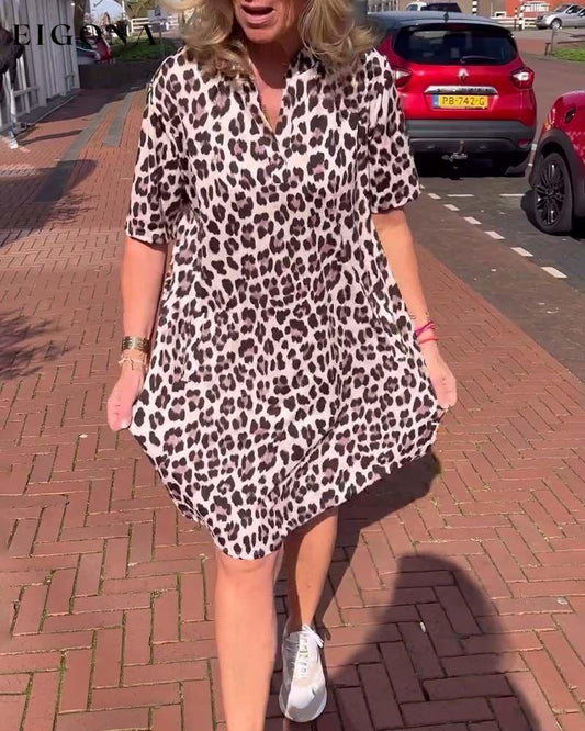 Lässiges Kleid mit V-Ausschnitt und Leopardenmuster