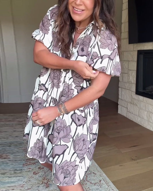 Lässiges Kleid mit Puffärmeln und Blumendruck
