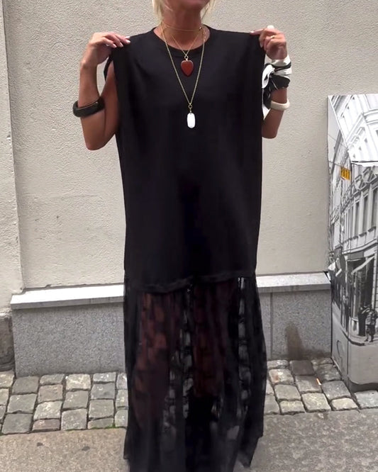 Ärmelloses Mesh-Patchwork-Kleid