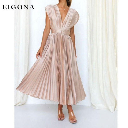 Sexy plissiertes, lässiges, lockeres, ärmelloses, lässiges, elegantes Midikleid mit Reißverschluss