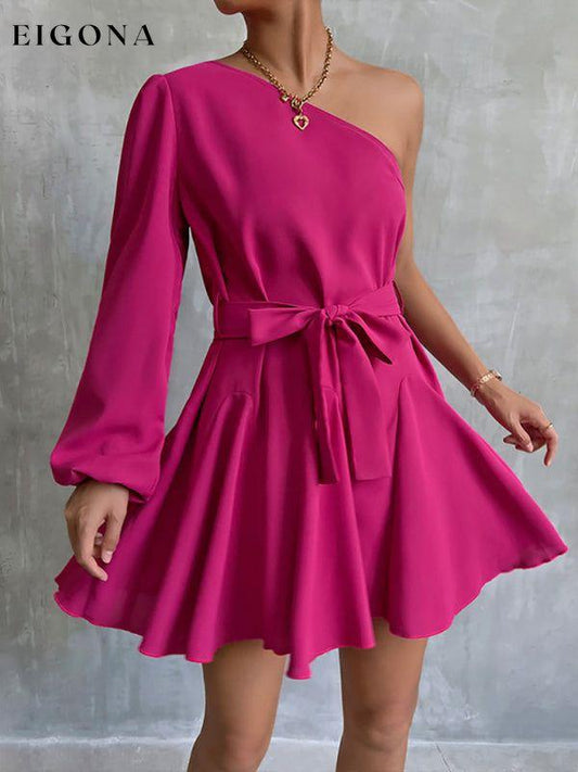 Modisches, schulterfreies, langärmliges Minikleid für Damen mit auffälliger Schleife zum Binden