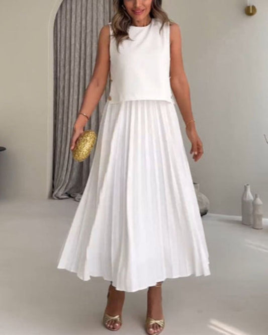Ärmelloses Colorblock-Kleid aus Baumwolle und Leinen